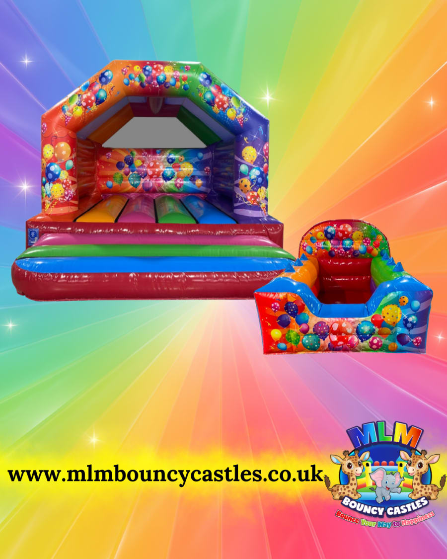 Bouncy castle hire 15ft x 12ft Party Bouncy Castle + Ballpit in Crawley, Horsham, Horley, East Grinstead, Haywards Heath, Turners Hill, Redhill, Reigate, Copthorne. Fast quotes and straightforward booking. 🎯