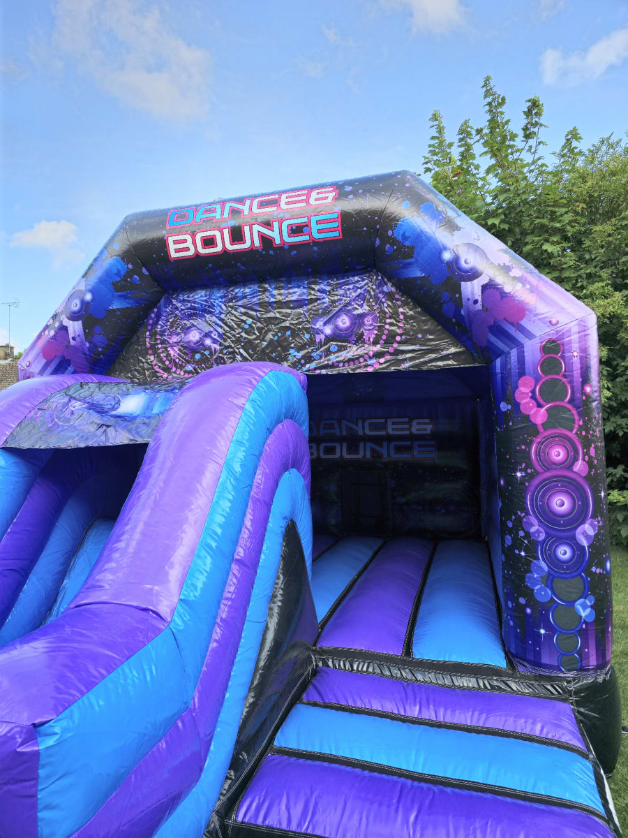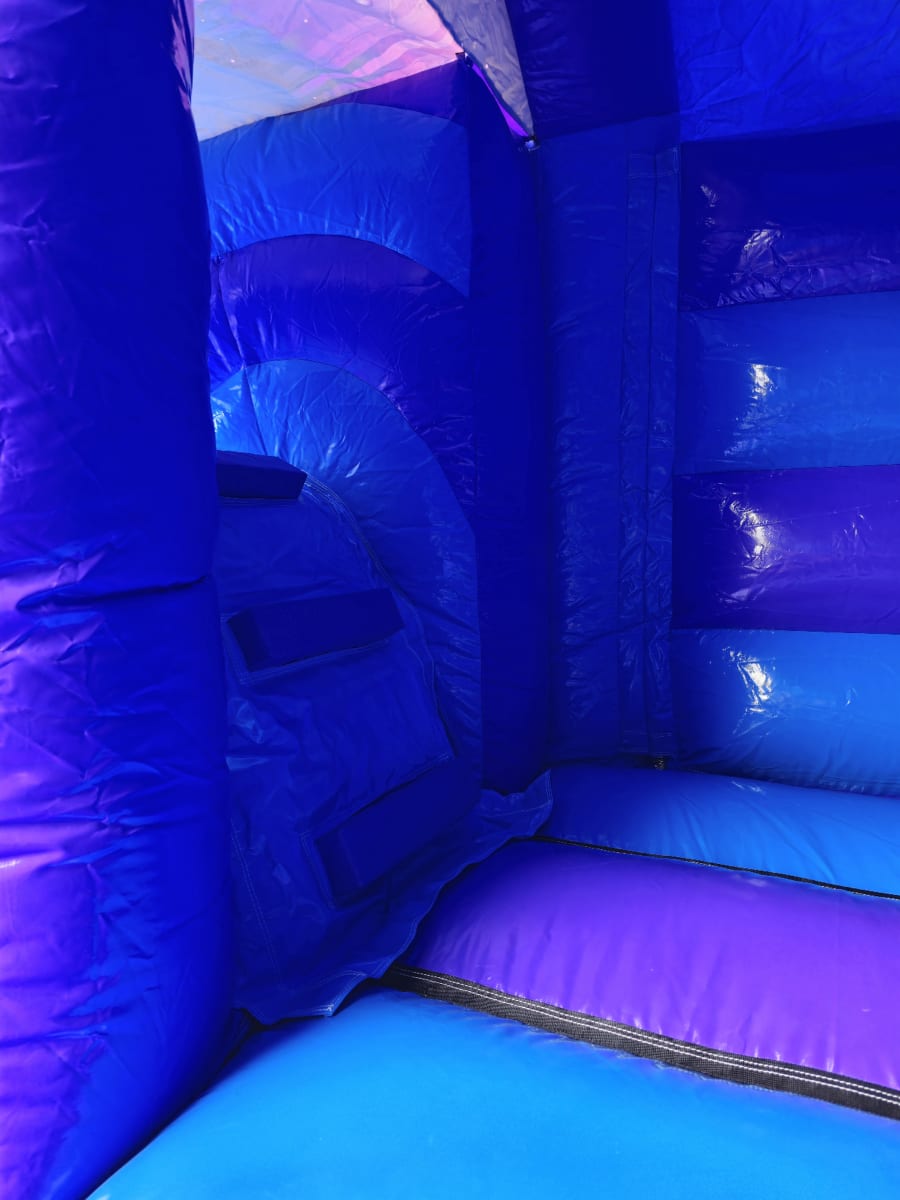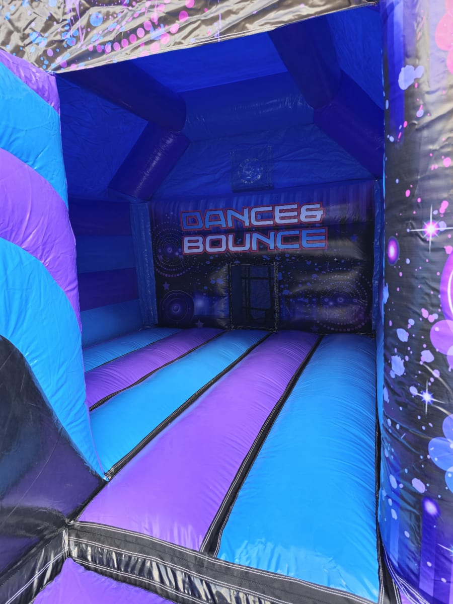 Get ready to turn your event into a fun-filled extravaganza with our Dance Bounce Inflatable Bouncy Castle with Slide! This vibrant bouncy castle features eye-catching purple and blue colours, futuristic patterns, and a built-in slide for added excitement. Perfect for kids , this inflatable castle is a must-have for any party or gathering.