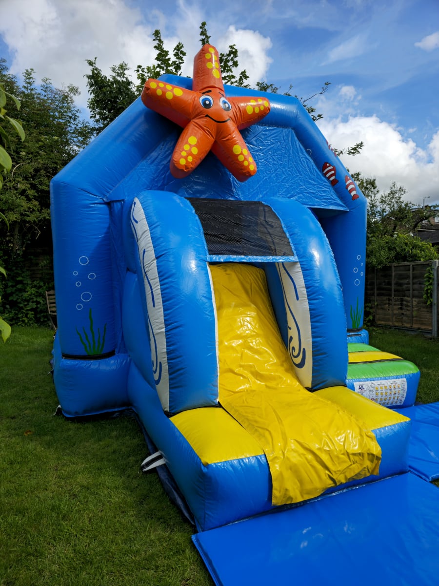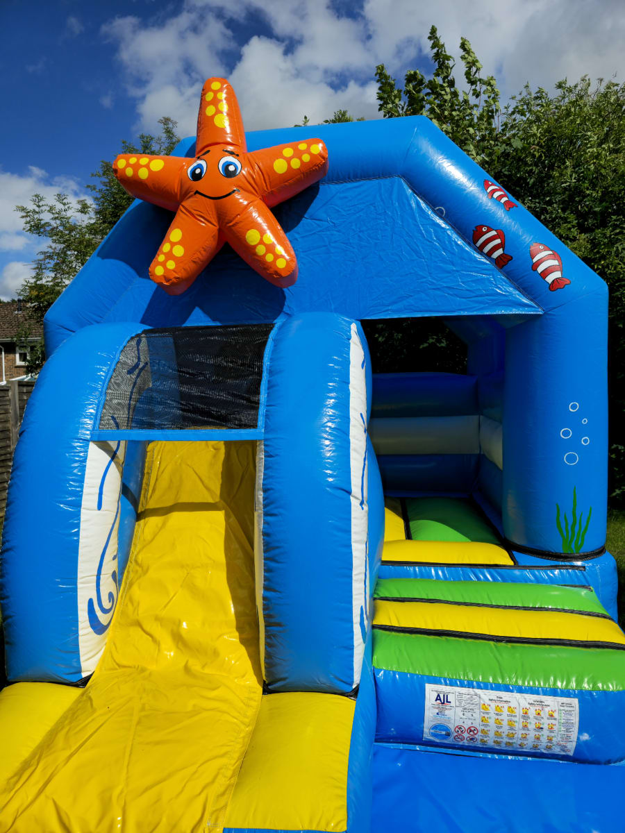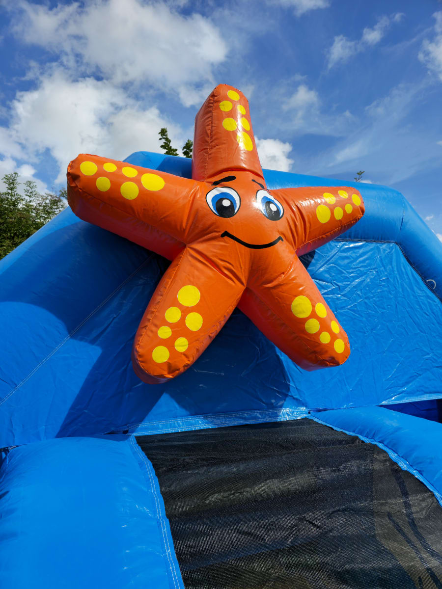Children will love exploring our sea-life-themed bouncy castle, with vivid images of colourful fish, waves, and 3D starfish! The front-facing slide adds an extra element of fun and excitement; this bouncy castle is designed not just for bouncing, but for creating unforgettable memories.