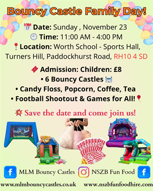 #MLMBouncyCastles #NSZBFunFood #Crawley #WestSussex #TurnersHill #BouncyCastleHire #SoftPlayHire #FamilyFunDay #KidsActivities #SussexEvents #FamilyDayOut #WeekendWithKids #SussexFamilies #CrawleyEvents